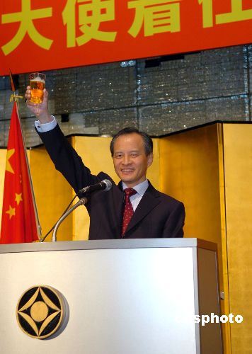 12月18日晚上,中國(guó)駐日使館在東京新大谷飯店舉行崔天凱大使到任招待會(huì),日本各政黨代表,政府各部門(mén)代表,各大企業(yè)代表以及在日華僑華人代表近200人參加。圖為崔天凱大使在致詞完后舉杯祝酒。中新社發(fā) 滕劍峰 攝