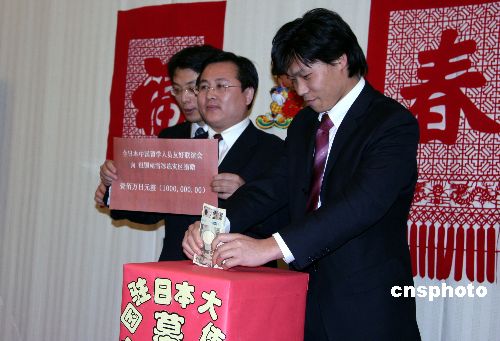 2月4日晚,中國駐日大使館舉行2008年春節(jié)聯歡會前,專門舉行了向國內雨雪災區(qū)進行捐款的活動。中新社發(fā) 滕劍峰 攝
