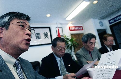 當?shù)貢r間3月9日,舊金山中國統(tǒng)一促進會、北加州中國和平統(tǒng)一促進會和海外興中會發(fā)表聯(lián)合聲明,堅決反對臺灣當局“入聯(lián)公投”。中新社發(fā) 陳鋼 攝
