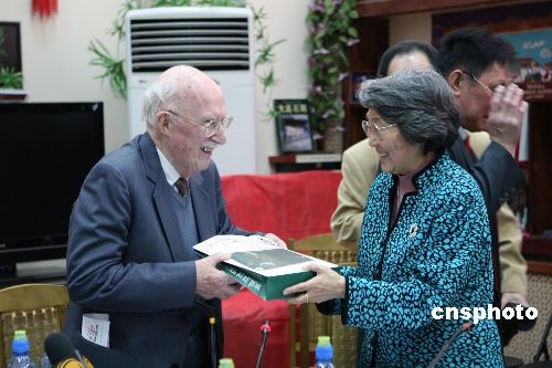 3月24日,俄中友協(xié)在莫斯科舉辦紀(jì)念周恩來誕辰110周年活動。圖為周恩來的侄女、原中國新聞社副社長周秉德向俄中友協(xié)名譽主席、著名漢學(xué)家齊赫文斯基贈送自己撰寫的《我的伯父周恩來》一書俄文版。齊赫文斯基在1949年前后擔(dān)任蘇聯(lián)駐北平(京)總領(lǐng)事,見證了中蘇建交的歷史。中新社發(fā) 田冰 攝