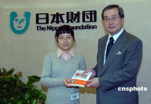 應(yīng)主辦方日本僑報(bào)社日中交流研究所的邀請(qǐng),第三屆中國(guó)人日語作文比賽最優(yōu)秀獎(jiǎng)得主——暨南大學(xué)日語系學(xué)生陳歆馨3月24日開始訪問日本。25日下午,陳歆馨在日本僑報(bào)社社長(zhǎng)張景子的陪同下,拜訪了作文比賽特別贊助者日本財(cái)團(tuán)。日本財(cái)團(tuán)理事長(zhǎng)尾形武壽鼓勵(lì)陳歆馨再接再厲,為中日友好作貢獻(xiàn)。據(jù)介紹,陳歆馨是在1400多名名參賽者中脫穎而出榮獲最優(yōu)秀獎(jiǎng)的。中新社發(fā) 段躍中 攝