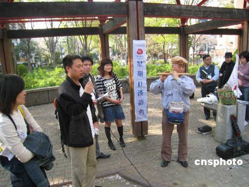 4月6日,日本僑報(bào)社創(chuàng)辦的星期日漢語角在東京西池袋公園舉行第34次交流活動(dòng)。參加者用日中兩國語言演唱了《北國之春》、《大海啊故鄉(xiāng)》等中日名曲,贏得在場人員的陣陣掌聲。中新社發(fā) 段躍中 攝