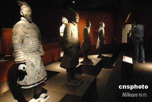 圖:中國(guó)國(guó)寶秦兵馬俑集體亮相美國(guó)加州