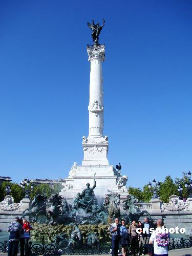 圖為9月21日,法國波爾多民眾到紀(jì)念碑前合影留念。
