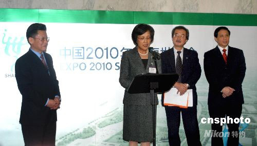 當(dāng)?shù)貢r(shí)間十月六日,“上海世博會(huì)聯(lián)合國(guó)圖片展”在紐約聯(lián)合國(guó)總部開(kāi)幕。上海世博會(huì)執(zhí)委員常務(wù)副主任鐘燕群(中)介紹上海世博會(huì)籌備情況。聯(lián)合國(guó)副秘書(shū)長(zhǎng)沙祖康(左)、副秘書(shū)長(zhǎng)赤阪清隆(右二)和中國(guó)常駐聯(lián)合國(guó)代表張業(yè)遂出席開(kāi)幕式(右)。該圖片展由上海世博會(huì)事務(wù)協(xié)調(diào)局、中國(guó)常駐聯(lián)合國(guó)代表團(tuán)和上海市對(duì)外文化交流協(xié)會(huì)共同舉辦。中新社發(fā) 汪晨 攝