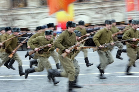 11月7日,俄羅斯士兵身著二戰(zhàn)時(shí)期樣式的軍裝在莫斯科紅場參加閱兵儀式,紀(jì)念1941年11月7日的紅場閱兵式舉行67周年。1941年11月7日,在德國法西斯軍隊(duì)兵臨莫斯科城下之際,蘇聯(lián)軍隊(duì)在紅場上舉行了閱兵式,紀(jì)念十月革命24周年。參加閱兵式的部隊(duì)在閱兵完畢后直接開赴前線同入侵的法西斯德軍作戰(zhàn)。