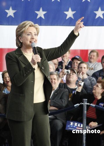 圖為民主黨參選人希拉里在參加2008年大選初選時演講。 中新社發(fā) 李靜 攝