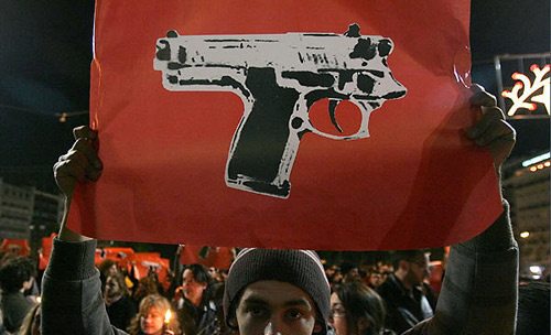12月9日,在希臘雅典,民眾舉行和平集會(huì),抗議警察打死15歲的少年格里戈羅普洛斯。格里戈羅普洛斯的葬禮當(dāng)天在雅典郊外舉行。12月6日晚,這名少年在沖突中被警察開(kāi)槍打死,由此引發(fā)希臘全國(guó)主要城市多日騷亂。