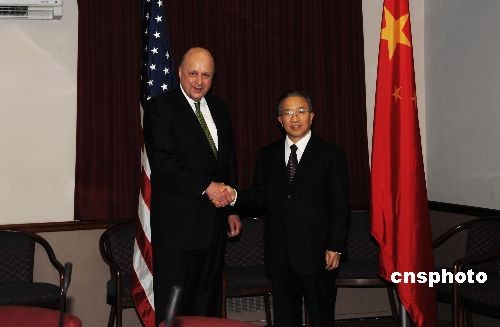第六次中美戰(zhàn)略對話當(dāng)?shù)貢r(shí)間12月15日在華盛頓舉行,中國國務(wù)委員戴秉國與美國常務(wù)副國務(wù)卿內(nèi)格羅蓬特共同主持會談。圖為戰(zhàn)略對話開始前,戴秉國與內(nèi)格羅蓬特面對媒體握手。中新社發(fā) 邱江波 攝