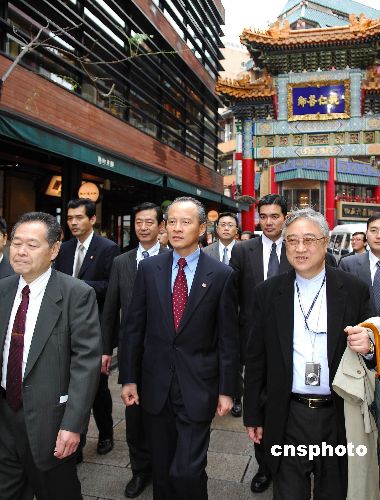 2009年1月23日上午,中國(guó)駐日本國(guó)特命全權(quán)大使崔天凱冒雨前往橫濱中華街,向當(dāng)?shù)厝A人華僑拜年。崔天凱與橫濱華僑總會(huì)會(huì)長(zhǎng)任政光親切會(huì)談,慰問(wèn)熱心資助教育的愛(ài)國(guó)華僑吳桂顯先生的遺孀,在臺(tái)灣同胞茶店品茶論道等,親身體驗(yàn)當(dāng)?shù)厝A人生活。崔天凱還視察了橫濱中華街關(guān)帝廟、媽祖廟等建筑,并出席華僑主辦的歡迎午宴。中新社發(fā) 侯宇 攝