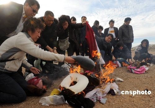 當?shù)貢r間二月五日下午,中國旅游團車禍遇難者家屬來到事故現(xiàn)場——美國亞利桑那州九十三號公路二十八英里處舉行悼念活動,寄托對親人的哀思。中新社發(fā) 張煒 攝