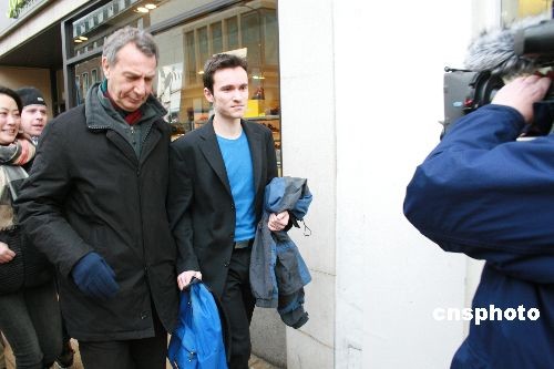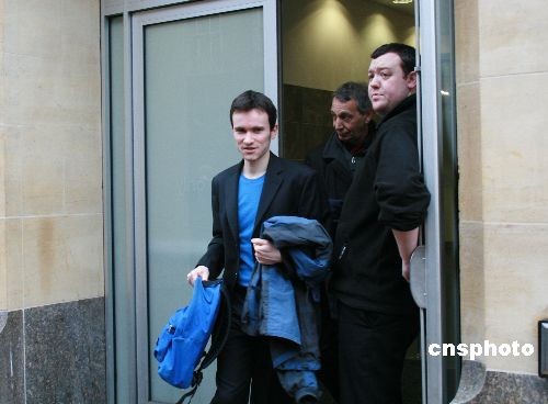 當(dāng)?shù)貢r間2月10日上午10時,干擾溫家寶總理劍橋演講的德國籍學(xué)生馬丁·楊克,在劍橋地方法院出庭受審。馬丁為自己做無罪辯護,法庭將于3月10日10時重新開庭審理。圖為馬丁·楊克在初審后離開法院。中新社發(fā) 李鵬 攝