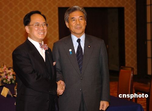 2月16日,香港特別行政區(qū)行政長官曾蔭權(quán)開始對(duì)日本的正式訪問。這是他就任特首以來首次訪日,受到日本政經(jīng)各界的歡迎。圖為16日傍晚,曾蔭權(quán)在東京與日本外相中曾根弘文舉行會(huì)談。中新社發(fā) 朱沿華 攝