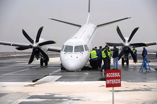 這架五十座SAAB2000型小型客機屬于羅馬尼亞喀爾巴阡山航空公司,當天早上從摩爾多瓦首都基希訥烏起飛,原定于當?shù)貢r間八點降落。當發(fā)現(xiàn)起落架出現(xiàn)故障后,客機開始在機場上空盤旋,以消耗油料,為迫降作準備。同時,地面人員往跑道上噴灑防火泡沫,機場方面還調集了二十輛消防車和救護車準備救援。在長達一小時四十多分鐘的空中盤旋后,飛機最終成功迫降。旅客目前已全部離開飛機,且未發(fā)現(xiàn)有人受傷。