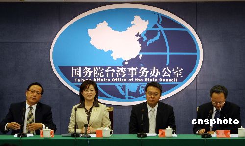 十一月十四日,國務(wù)院臺灣事務(wù)辦公室舉行例行新聞發(fā)布會,女發(fā)言人范麗青首次登臺亮相。她與商務(wù)部臺港澳司司長唐煒、商務(wù)部對外貿(mào)易司司長梁樹和、交通部臺辦副主任李建生一道,就天然砂對臺出口等問題回答記者提問。中新社發(fā) 任海霞 攝