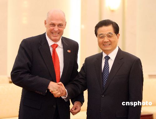 十二月十三日,北京人民大會堂,中國國家主席胡錦濤會見美國財政部長保爾森等出席第三次中美戰(zhàn)略經(jīng)濟對話的代表。中新社發(fā) 毛建軍 攝