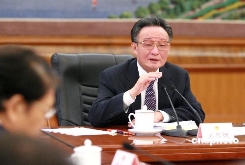 十二月十七日,十屆全國人大常委會第七十次委員長會議在北京人民大會堂召開。全國人大常委會委員長吳邦國主持會議。中新社發(fā) 廖文靜 攝