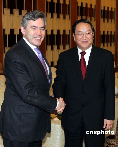 上海市委書記俞正聲會見來華訪問的英國首相戈登·布朗。
