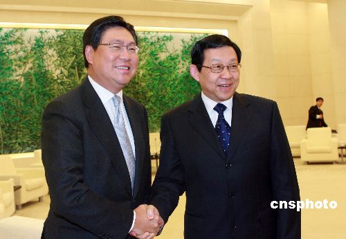 一月二十五日,中國商務(wù)部部長陳德銘在北京會見香港商務(wù)及經(jīng)濟發(fā)展局長馬時亨一行。中新社發(fā) 廖文靜 攝