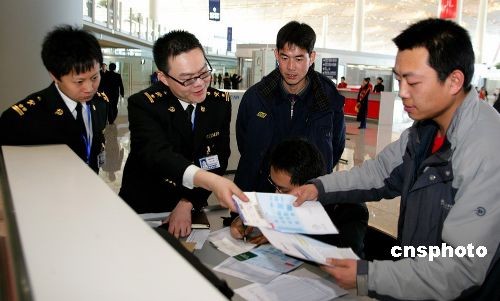圖:首都機(jī)場(chǎng)T3航站樓的海關(guān)工作人員已到位