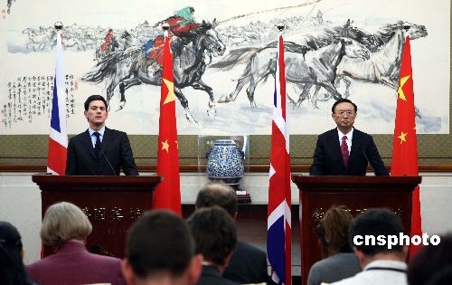 圖:楊潔篪與英外交大臣米利班德共同會(huì)見記者