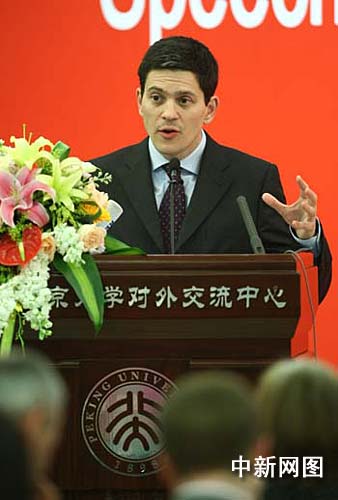 圖:英國(guó)外交大臣米利班德在北大演講