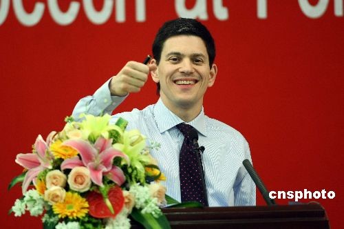 圖:英國(guó)外交大臣米利班德在北京大學(xué)發(fā)表演講