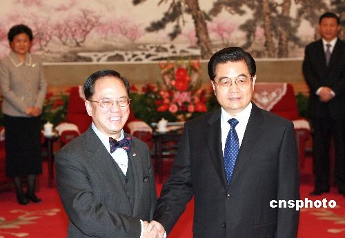 胡錦濤會(huì)見香港特別行政區(qū)行政長官曾蔭權(quán)