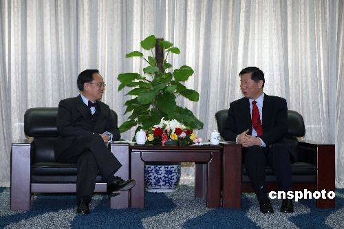 3月18日,香港特別行政區(qū)行政長官曾蔭權(quán)在北京先后拜訪了中國人民銀行和中國證券監(jiān)督管理委員會。圖為曾蔭權(quán)與中國證監(jiān)會主席尚福林交談。中新社發(fā) 盛佳鵬 攝