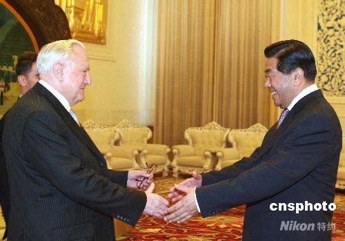 賈慶林會見法國參議院議長蓬斯萊