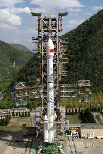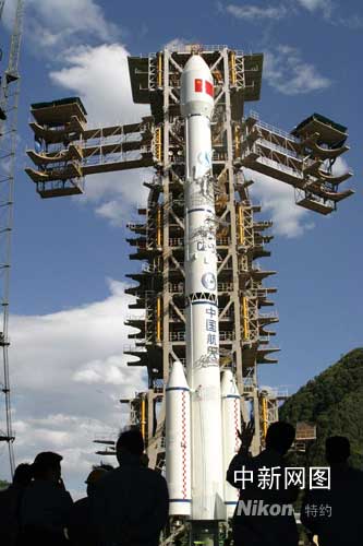 圖為發(fā)射前星箭組合體雄姿。