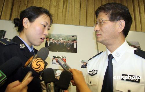 5月19日,中國國務(wù)委員、公安部部長孟建柱在北京向被稱為地震災(zāi)區(qū)“最堅強女性”的四川省彭州市公安局民警蔣敏表示慰問。在此次汶川特大地震災(zāi)害中,蔣敏在北川縣城老家的爺爺奶奶、母親、剛滿兩歲的女兒等近十位親人不幸罹難,但她依然連續(xù)奮戰(zhàn)在抗震救災(zāi)一線。蔣敏事跡經(jīng)官方媒體報道后,被民間稱為“最堅強女性”、“最堅強母親”,網(wǎng)友則親切稱她為“最堅強警花”。中新社發(fā) 孫自法 攝