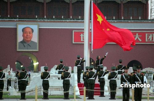 北京天安門廣場下半旗哀悼汶川地震遇難同胞