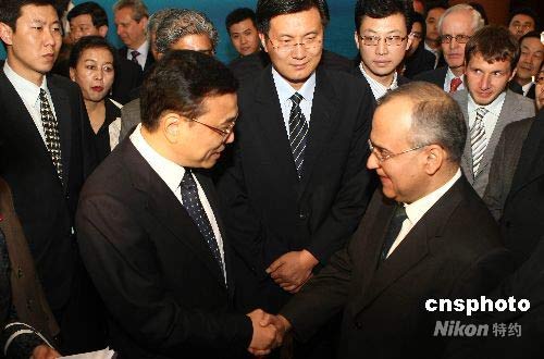 6月26日,中國(guó)外交部在北京釣魚(yú)臺(tái)國(guó)賓館舉辦抗震救災(zāi)答謝招待會(huì)。李克強(qiáng)代表中國(guó)政府和人民,感謝各國(guó)政府、人民和國(guó)際組織以及各駐華外交機(jī)構(gòu)在四川汶川大地震后給予中國(guó)人民的深切慰問(wèn)、大力支持和無(wú)私援助。170多位外國(guó)駐華使節(jié)和國(guó)際組織駐華機(jī)構(gòu)代表出席了招待會(huì)。中新社發(fā) 盛佳鵬 攝