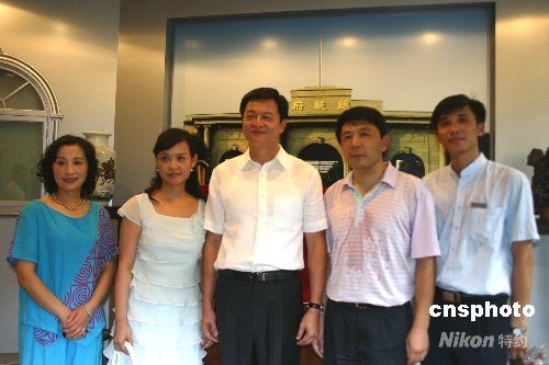 7月26日下午,臺(tái)北縣長(zhǎng)周錫瑋一行參觀南京“總統(tǒng)府”(南京中國(guó)近代史遺址博物館),并在“總統(tǒng)府”巨幅彩照前和館內(nèi)工作人員合影。臺(tái)北縣南京參訪團(tuán)于25日晚間抵達(dá)南京,展開訪問。中新社發(fā) 朱曉穎 攝