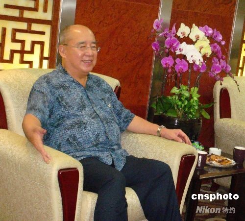 8月13日晚7時(shí)許,中國(guó)國(guó)民黨主席吳伯雄一行抵達(dá)廈門高崎機(jī)場(chǎng),并隨后前往龍巖。14日上午,吳伯雄將赴龍巖思賢村祖地祭祖。圖為吳伯雄在廈門高崎機(jī)場(chǎng)休息室。中新社發(fā) 陳悅 攝
