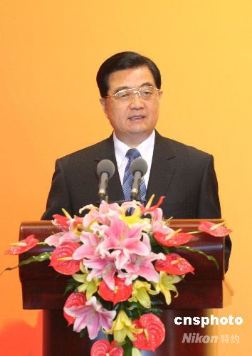 9月17日,中國國家主席胡錦濤與夫人劉永清在北京釣魚臺(tái)國賓館芳菲苑舉行宴會(huì)歡迎出席北京殘奧會(huì)閉幕式的國際貴賓。圖為胡錦濤在宴會(huì)上致辭。 中新社發(fā) 廖文靜 攝