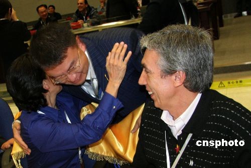 中委雙方在西昌衛(wèi)星發(fā)射中心指控大廳共同慶祝衛(wèi)星發(fā)射成功。 北京時間10月30日凌晨零時53分,中國在西昌衛(wèi)星發(fā)射中心用“長征三號乙”運載火箭,將“委內(nèi)瑞拉一號”通信衛(wèi)星成功送入預(yù)定軌道。這是中國首次向拉丁美洲用戶提供整星出口和在軌交付服務(wù)。中新社發(fā) 孫自法 攝