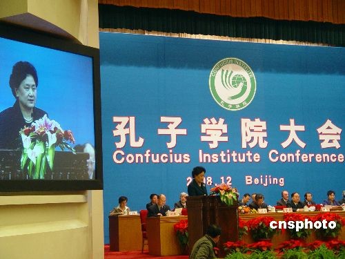 每年舉行一次的孔子學(xué)院大會(huì)十二月九日下午在北京人民大會(huì)堂開幕,中共中央政治局委員、國務(wù)委員劉延?xùn)|在講話中對下一步如何辦好孔子學(xué)院,提出了四點(diǎn)建議,即堅(jiān)持辦學(xué)宗旨、注意提高質(zhì)量、鼓勵(lì)探索創(chuàng)新、推動(dòng)平等合作。本屆孔子學(xué)院大會(huì)的主題為“孔子學(xué)院與全球化教育”,來自七十八個(gè)國家和地區(qū)的約五百位大學(xué)校長和孔子學(xué)院代表將在今后的會(huì)議中圍繞漢語推廣與世界多元文化發(fā)展、孔子學(xué)院對大學(xué)和當(dāng)?shù)氐呢暙I(xiàn)等議題進(jìn)行廣泛交流。中新社發(fā) 應(yīng)妮 攝