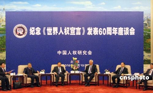 12月10日下午,中國人權研究會在北京人民大會堂舉行座談會,紀念《世界人權宣言》發(fā)表60周年。中新社發(fā) 孫自法 攝