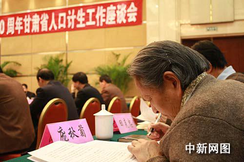 12月11日,一位退休的計(jì)生干部受邀參加“紀(jì)念改革開放30周年甘肅省人口計(jì)生工作座談會(huì)”。當(dāng)日,甘肅省人口委主任蘇君表示,30年來(lái),甘肅因?qū)嵭杏?jì)劃生育少生1062萬(wàn)人,使人均GDP相對(duì)提高了2944元,人均壽命由65歲提高到71歲。甘肅等地在中國(guó)農(nóng)村率先實(shí)施了獎(jiǎng)勵(lì)扶助制度,變“處罰多生”為“獎(jiǎng)勵(lì)少生”。2007年,該省人口出生率、自然增長(zhǎng)率下降到13.14‰、6.49‰。攝影:殷春永