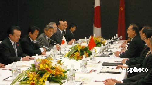 當(dāng)?shù)貢r間12月13日下午2點許,中國總理溫家寶與日本首相麻生太郎在位于福岡的九州國立博物館舉行會見。中新社發(fā) 朱沿華 攝