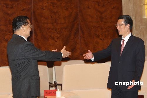 12月14日,中共天津市委書(shū)記張高麗在天津會(huì)見(jiàn)中國(guó)國(guó)民黨榮譽(yù)主席連戰(zhàn)。中新社發(fā) 盛佳鵬 攝