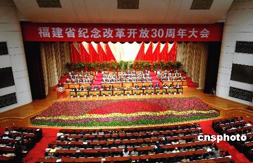 12月17日下午,福建省紀(jì)念改革開放30周年大會在福建會堂舉行。中共福建省委書記盧展工在福建省紀(jì)念改革開放30周年大會上作講話。中新社發(fā) 劉可耕 攝