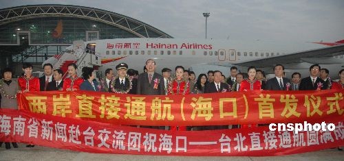 十二月二十日上午八時,海航HU七九四七航班載著一百二十名旅客從海口起飛,兩個小時后將抵達臺北。瓊臺當日首開兩島直航,將為兩個姊妹島進一步交流合作開啟坦途。海南新聞赴臺交流團也搭乘直航班機前往臺灣訪問。中新社發(fā) 王辛莉 攝