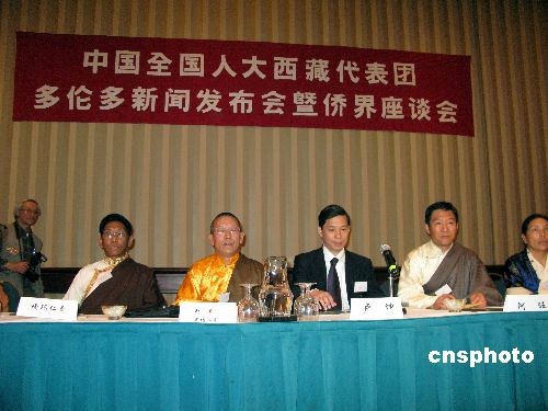 當(dāng)?shù)貢r(shí)間三月二十日,結(jié)束在美國(guó)的訪問(wèn)后,由五位在西藏成長(zhǎng)和生活的全國(guó)人大代表組成的中國(guó)全國(guó)人大西藏代表團(tuán)赴加拿大繼續(xù)訪問(wèn)。在加拿大機(jī)場(chǎng)受到當(dāng)?shù)馗鹘缛耸康臒崃覛g迎。二十日抵達(dá)多倫多數(shù)小時(shí)后,代表團(tuán)舉行記者會(huì),接受二十多家媒體四十多名記者的集體采訪,詳細(xì)回答記者的提問(wèn)。中新社發(fā) 孫宇挺 攝