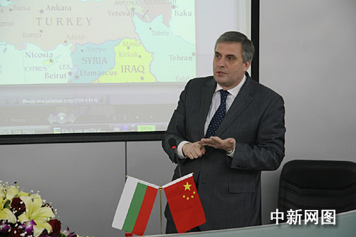 卡爾芬還為師大學(xué)子帶來題為《黑海區(qū)域的地位以及保加利亞對該地區(qū)穩(wěn)定與發(fā)展的貢獻(xiàn)》的精彩演講。華師 攝