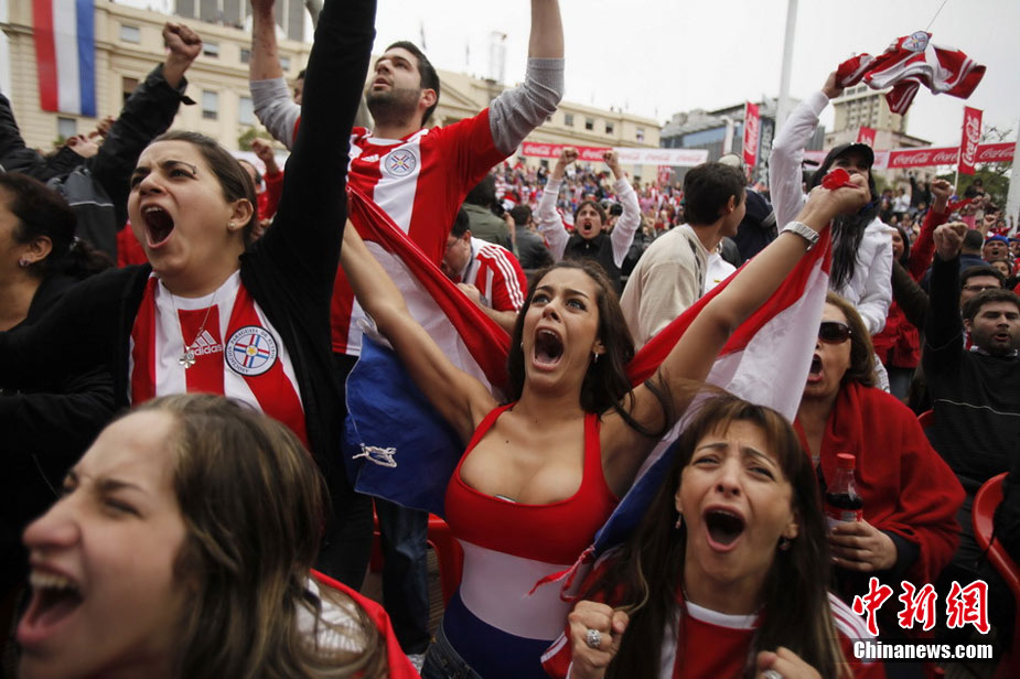 6月29日,巴拉圭點(diǎn)球大戰(zhàn)5-3擊敗日本。著名乳神女球迷拉里薩再度胸夾手機(jī)亮相,并與日本球迷同樂,瘋狂慶祝盡顯激情狂野。