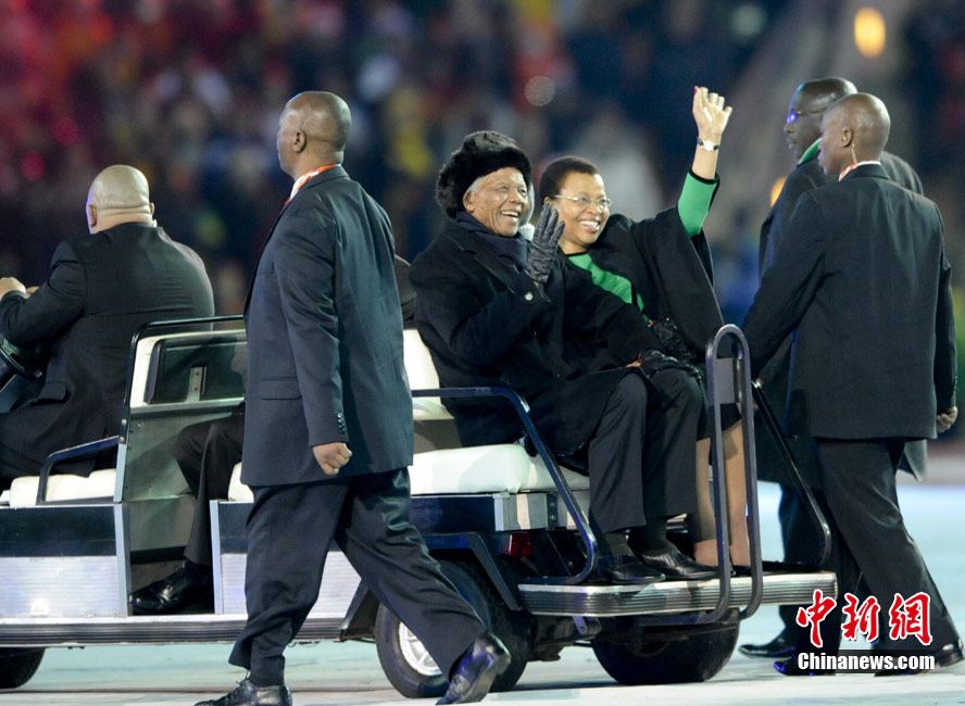 北京時(shí)間7月12日凌晨0:45,南非世界杯閉幕式拉開帷幕,在這場(chǎng)兼具活力和高科技的精彩表演中,洋溢著濃郁的非洲風(fēng)情,成為即將在2:30打響的荷蘭與西班牙決賽的最好墊場(chǎng)戲。圖為南非前總統(tǒng)納爾遜曼德拉出席閉幕式。中新社記者 廖攀 攝