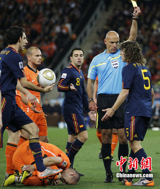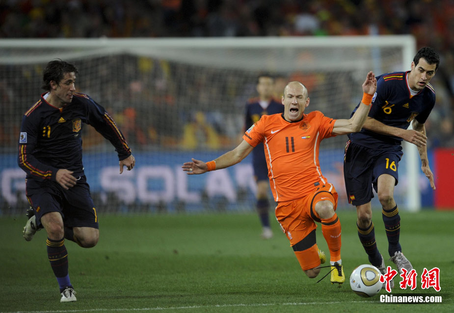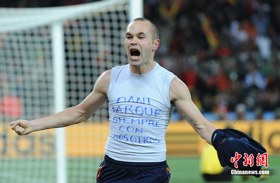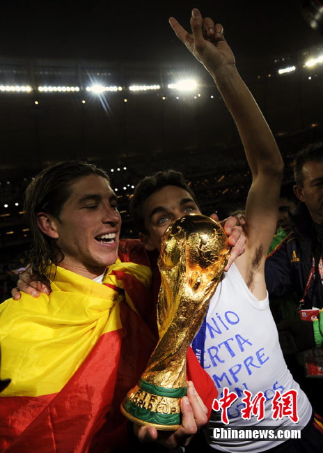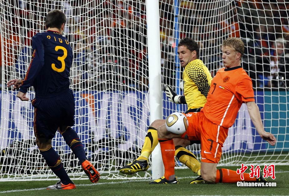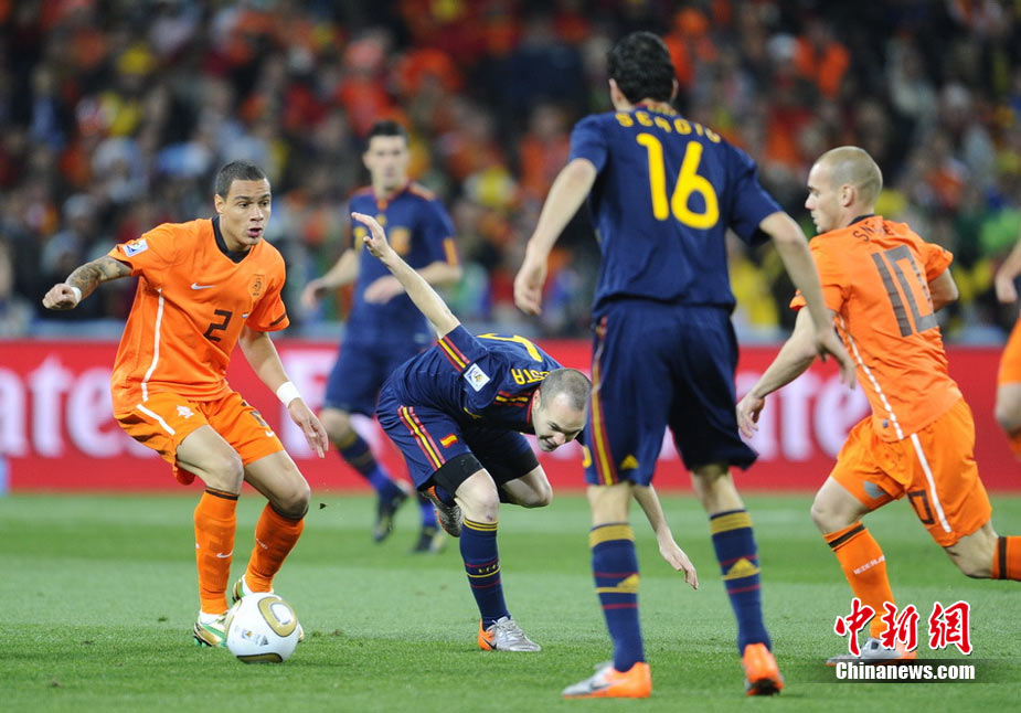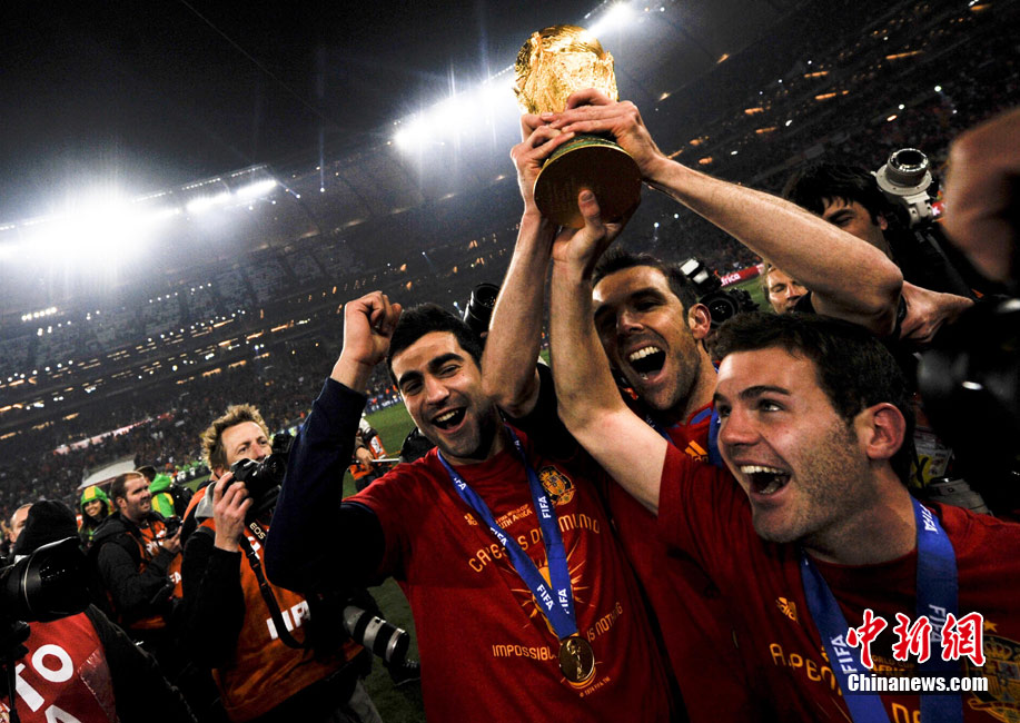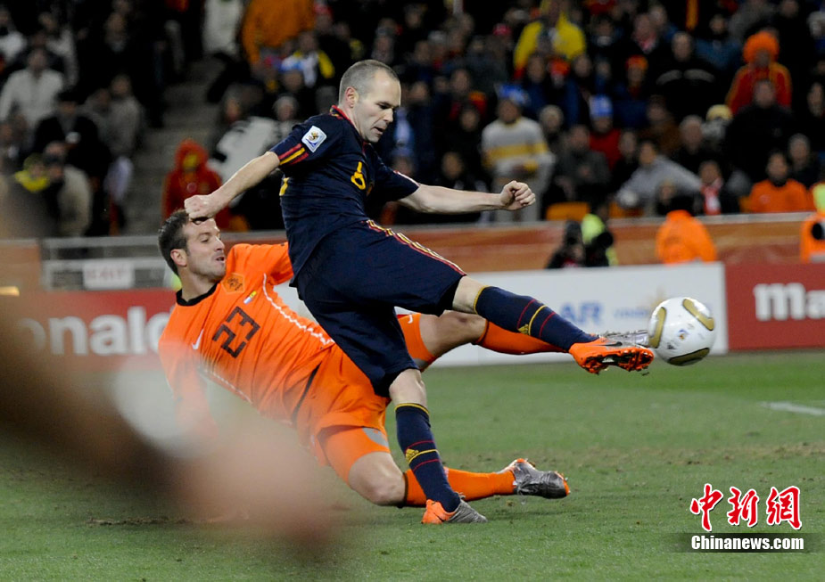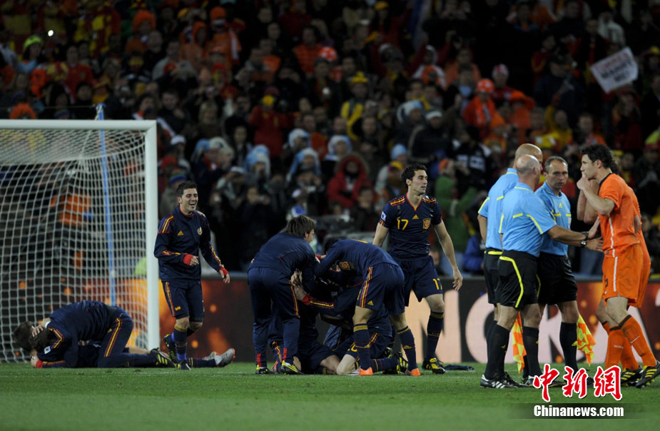 北京時間7月12日凌晨2:30,南非世界杯迎來了最終的決賽,在約翰內(nèi)斯堡的足球城球場由荷蘭隊對陣西班牙。最終雙方經(jīng)過120分鐘鏖戰(zhàn),伊涅斯塔在第116分鐘攻入全場唯一一粒進球,絕殺十人應戰(zhàn)的荷蘭隊,史上首次奪得冠軍。